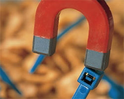 Aujourd’hui, les solutions autour du câble magnétiquement détectables proposées par HellermannTyton offrent l’un des niveaux de détectabilité les plus élevés, la plage de détection de métaux ferreux allant de 1,0 mm à 3,4 mm selon des techniques de mesure reconnues par le secteur. « Les particules de métal sont uniformément réparties dans nos articles, donc les plus petits fragments peuvent facilement être détectés même s’ils sont sectionnés ou endommagés pendant une opération de maintenance, avant de se retrouver potentiellement dans le produit fini et de faire la une des médias », a ajouté Laurent Mary. La gamme HellermannTyton de produits magnétiquement détectables destinés au secteur agroalimentaire comprend des colliers de serrage (métalliques ou plastiques), des embases de fixation (adhésives ou à visser), des gaines spiralées, des gaines de protection de câbles et des raccords métalliques détectables, ainsi que des outils de pose pour un raccord optimal.