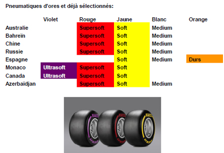 * La nouvelle réglementation en matière de pneumatiques impose d’annoncer la sélection 14 semaines avant chaque Grand Prix extra-européen, la limite étant de 8 semaines pour les épreuves organisées en Europe.