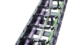 Par ailleurs, la série EasyTrax est équipée de traverses de lamelles flexibles dans lesquelles les câbles se posent simplement. Dans l’espace dédié aux câbles, un niveau de remplissage très élevé peut être atteint même quand les traverses pivotantes sont placées sur le côté. La technologie à deux composants est utilisée pour les deux séries, combinant des maillons constitués d’un matériau dur avec des barres transversales flexibles. Ceci permet la construction de porte-câbles exceptionnels, qui combinent les propriétés apparemment contradictoires de souplesse et de stabilité.