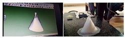Enfin, des ateliers mêlant senteur, croquis et modélisation sont organisés à l’Ecomusée du pays de la cerise à Fougerolles utilisant des méthodes de distillation du kirsch (même procédé que celui du parfum).. Ce dernier est expliqué au travers d’une mini-conférence et reproduit par un schéma dessiné par les enfants. La conservatrice du musée, collectionneuse et véritable nez, avait également amené pour les enfants un échantillonnage de parfums rares destinés à l’observation du flaconnage et au travail sur les senteurs : déterminer un hespéridé, un floral, un fruité, reconnaissance des senteurs. Au Musée, les élèves croquent aussi les parfums sous plusieurs angles de vue et réalisent une expression écrite. Un atelier Impression 3D est ensuite organisé. Avec l’aide d’équipe de Canopé, chaque élève crée, modélise son flacon sur le logiciel Sketchup et l’envoie ensuite sur le logiciel intégré à l’imprimante 3D UP Plus 2. La naissance de chaque petite bouteille grâce à l’impression 3D est l’étape finale du projet, l’aboutissement de tous les efforts des élèves.