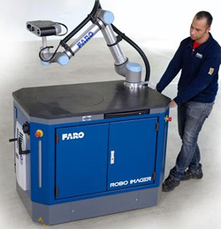 Lancé en janvier 2016, le FARO Factory Array Imager est un nouveau capteur 3D de classe métrologique équipé de la technologie de lumière bleue, capable de capturer rapidement des données de mesures à haute résolution pour le contrôle dimensionnel de pièces, assemblages et outils. Lorsqu’il est connecté au robot collaboratif, le Robo-Imager constitue une solution clé en main pour automatiser l’inspection et la vérification de pièces n’importe où dans l’environnement de production.