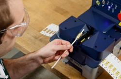 L´applicateur BSP45 permet de retirer les manchons pré-imprimés de leur support et de les presser pour qu´un câble puisse y être facilement inséré par un opérateur. Lorsque l´opérateur appuie sur la pédale amovible, l´applicateur BSP45 relâche le câble tout juste étiqueté et retire le manchon pré-imprimé suivant de son support. Les manchons de câble peuvent être imprimés sur site avant d´être appliqués à l´aide d´une imprimante BP PR+ ou BPP™72 de Brady.