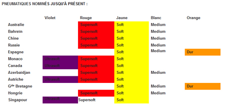 Rouge extra-tendre : le choix privilégié, qui sera chaussé massivement en qualifications et en course.